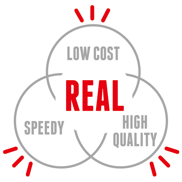 - REALは⼀社完結型を取り⼊れている為「コストカット」ができ「スピーディ」な納期で「ストーリー」がブレず、当初の⽬的にあったハイクオリティなサービスを受けとることができます。