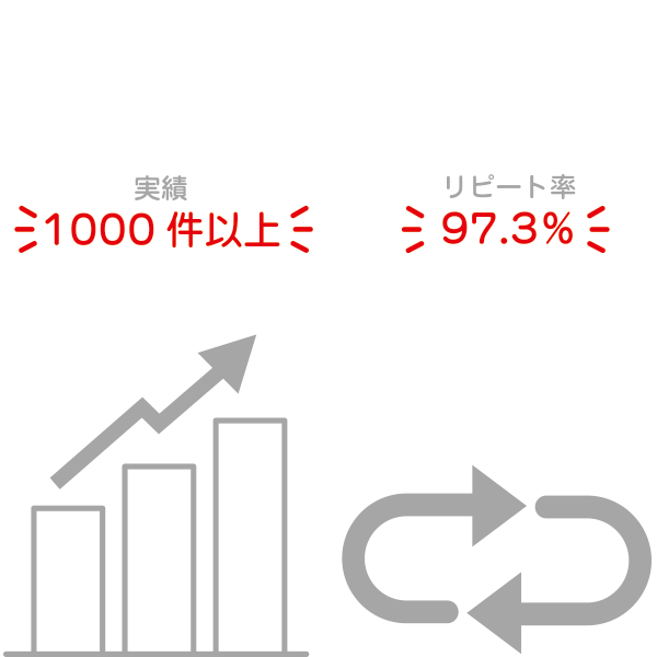 - 合計1000件以上の実績とリピート率97.3%という信頼があります。